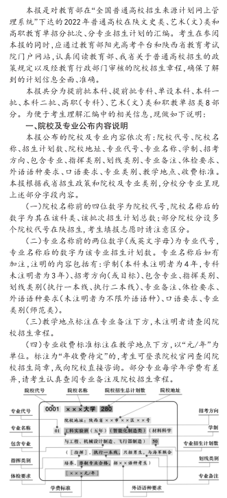 2022年普通高校在陕招生文史类及高职教育单招分校分专业计划汇编说明