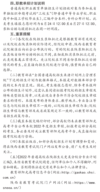 2022年普通高校在陕招生文史类及高职教育单招分校分专业计划汇编说明