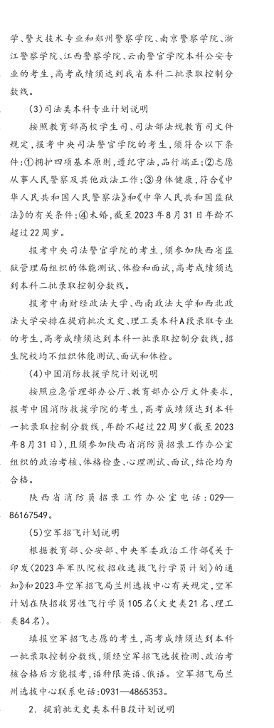 2023年普通高校在陕招生文史类及高职教育单招分校分专业计划汇编说明