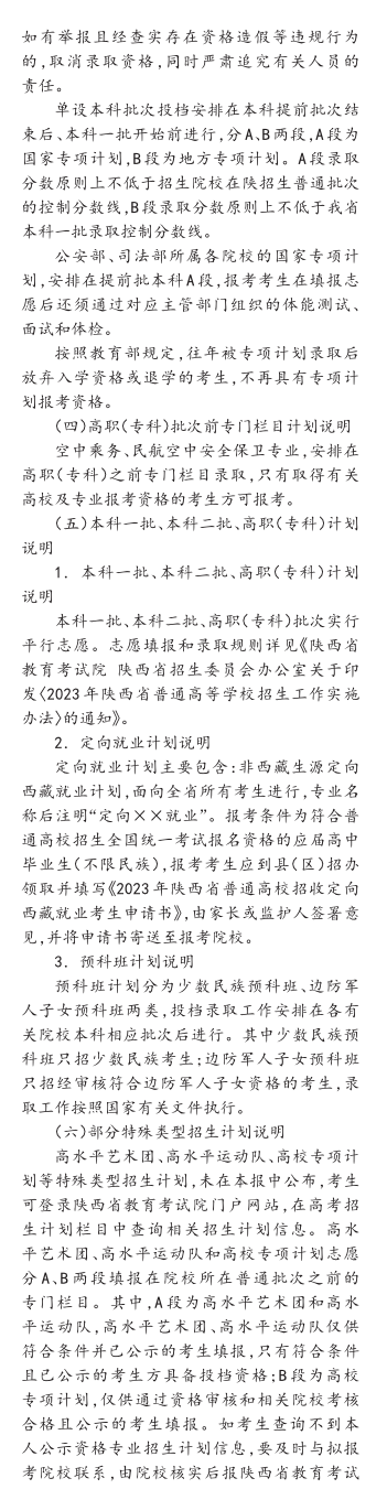 2023年普通高校在陕招生文史类及高职教育单招分校分专业计划汇编说明